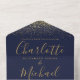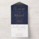 Navy Blue And Gold Glitter Script Wedding All In One Invitation