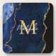 This coaster features an elegant and glamourous agate marble background with geode gemstone detailing and faux gold glitter accents. The monogram combines handwritten script and modern sans serif fonts for a classy and sophisticated look. This will make the ideal gift as it can be customized with a name and initial. The deep blue hues make it perfect for autumn fall and winter.