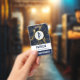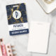 Personalized name badge with a stylish and elegant background of navy blue and gold marble.