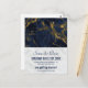Wedding save the date postcard with a stylish and elegant looking background of navy blue and gold marble. The bottom half of the card has an off white marble pattern as well, with your personalized text written over top.