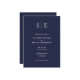 This chic minimalist wedding invitation can be personalized with your monogram initials and wedding day details on a navy blue background. Designed by Thisisnotme©