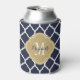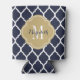 Navy Blue and Gold Moroccan Quatrefoil Monogram Can Cooler