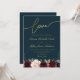 Navy blue and gold script burgundy floral wedding invitation