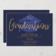 Navy Blue And Gold Script Graduation Party Invitation