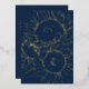 Elegant Navy blue and gold wedding invitation, featuring sunflowers in gold on a navy-blue background.