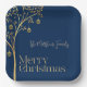 Navy Blue And Gold tree Christmas Script Name Paper Plate