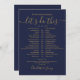 This stylish navy blue wedding schedule timeline can be personalized with your wedding details in chic lettering. Designed by Thisisnotme©