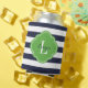 Navy Blue and Green Preppy Stripes Monogram Can Cooler