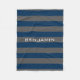Navy Blue and Grey Rugby Stripes with Custom Name Fleece Blanket