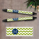 Navy Blue and Lime Green Chevrons Custom Monogram Black Ink Pen