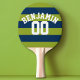 Navy Blue and Lime Green Rugby Stripes Name Number Ping Pong Paddle
