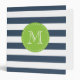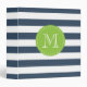 Navy Blue and Lime Green Stripes Custom Monogram Binder