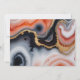 Contemporary save the date invitation featuring an orange square in which all your information is elegantly written on an abstract agate marble background. The agate details are in shades of orange and blue with gold accents. Check out our store for more items from this wedding collection.