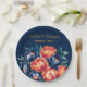 Navy Blue and Orange Peony Flower Wedding Paper Plate