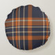 Navy Blue and Orange Plaid Round Pillow