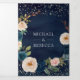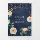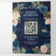 Navy Blue and Peach Floral Photo QR Code Wedding Tri-Fold Invitation