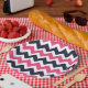 Custom designed paper party plates with a chic preppy zigzag chevron pattern. Click Customize It to personalize the design with your own text and images to create a unique one of a kind design to match any party decor!
