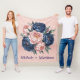 Navy Blue and Rose Gold Floral Fleece Blanket