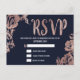 Navy Blue and Rose Gold Floral RSVP Invitation Postcard