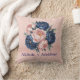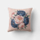Navy Blue and Rose Gold Floral Throw Pillow