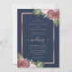 Navy Blue and Rose Gold Floral Wedding Invitations