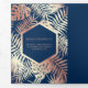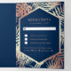 Navy Blue and Rose Gold Foil Tropical Palm Wedding Tri-Fold Invitation