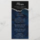 Display your meal selections in style with this elegant wedding menu featuring a navy blue agate marble design accented with silver details. The geode-inspired background creates a sophisticated look, perfect for fall and winter weddings, formal celebrations, or evening events. Designed to coordinate with your wedding stationery suite, this menu is ideal for presenting courses clearly while adding a luxurious touch to your table setting. The clean typography ensures readability while complementing the agate texture. Easily personalize all text to suit your menu and event details, making it a beautiful choice not only for weddings but also for engagement parties, anniversaries, and other formal occasions.