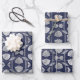Navy Blue and Silver Art Deco Shell Pattern Wrapping Paper Sheet