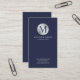Navy Blue and Silver Elegant Monogram Business Card