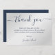 Elegant navy blue and silver thank you card featuring a modern script font. Easily personalize online. Matching items available for this modern wedding thank you card.