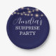 Navy Blue and String Light Surprise Birthday Paper Plate