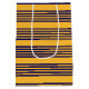 Navy blue and sunny yellow five stripes pattern medium gift bag