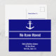 Navy Blue and White Anchor Moving Announcement Postcard