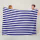 Navy blue and white candy stripes fleece blanket