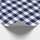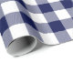 A wrapping paper designed with a navy blue and white check plaid pattern in large size. Customize the white background among other options.