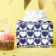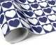 A wrapping paper built with a navy blue and white chequered pattern with hearts in large size. Customize the white background colour among several options.