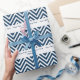 Trendy chevron paper in preppy navy and white with white stripe and space for your text, name or initial monogram. You can customize it or delete the text and leave the zigzag pattern as is.