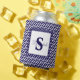 Modern navy blue and white chevron striped monogrammed can cooler.
