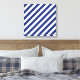 Navy Blue and White Diagonal Stripes Pattern Canvas Print