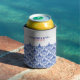 Navy Blue And White Elegant Lacy Damasks Can Cooler