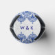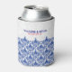 Elegant navy blue vintage floral lacy damasks, customizable wedding can cooler design. Touch of pink. Customizable monogram on the bottom part.