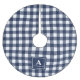 Navy Blue And White Gingham Plaid Monogram Brushed Polyester Tree Skirt