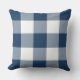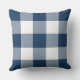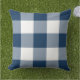 Navy Blue and White Gingham Plaid Pattern Outdoor Pillow