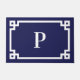 Navy Blue and White Greek Key Frame Monogram Doormat