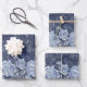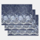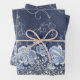 White lace flowers on top of a beautiful navy blue background. Not real lace. Great for decoupage art, paper crafts, or gift wrapping.