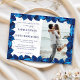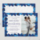 Navy Blue and White Marble Floral Photo Wedding Invitation