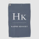 Navy Blue and White Modern Monogram Elegant Custom Golf Towel