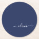 Navy Blue and White Modern Monogram Round Paper Coaster