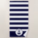 Navy Blue and White Nautical Ship Anchor Beach Towel