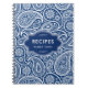 Elegant navy-blue and white vintage paisley pattern, customizable template mini binder template.